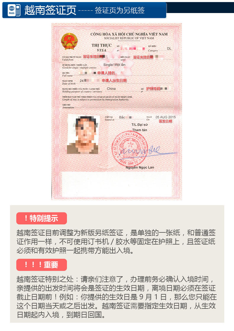 【备注】 越南签证为线上自助提交资料,无需邮寄或发送电子版资料