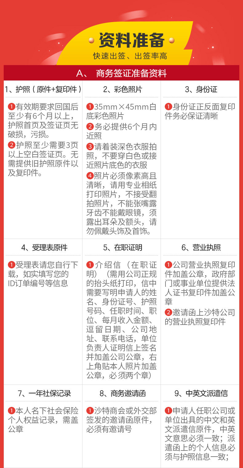 【商务签证】初审2个工作日,初审合格后至签证结果返回3个工作日 |