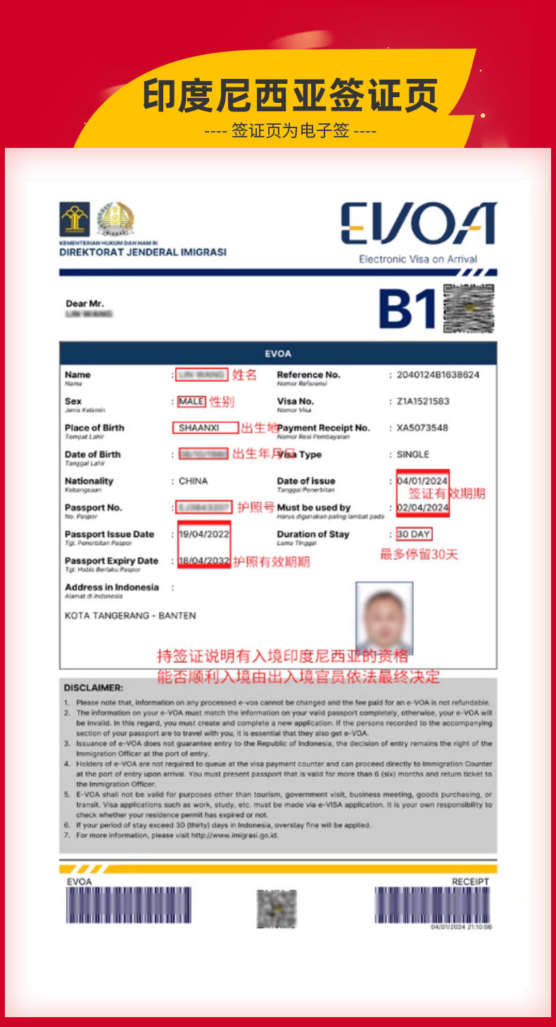 印尼个人旅游电子签证EVOA |